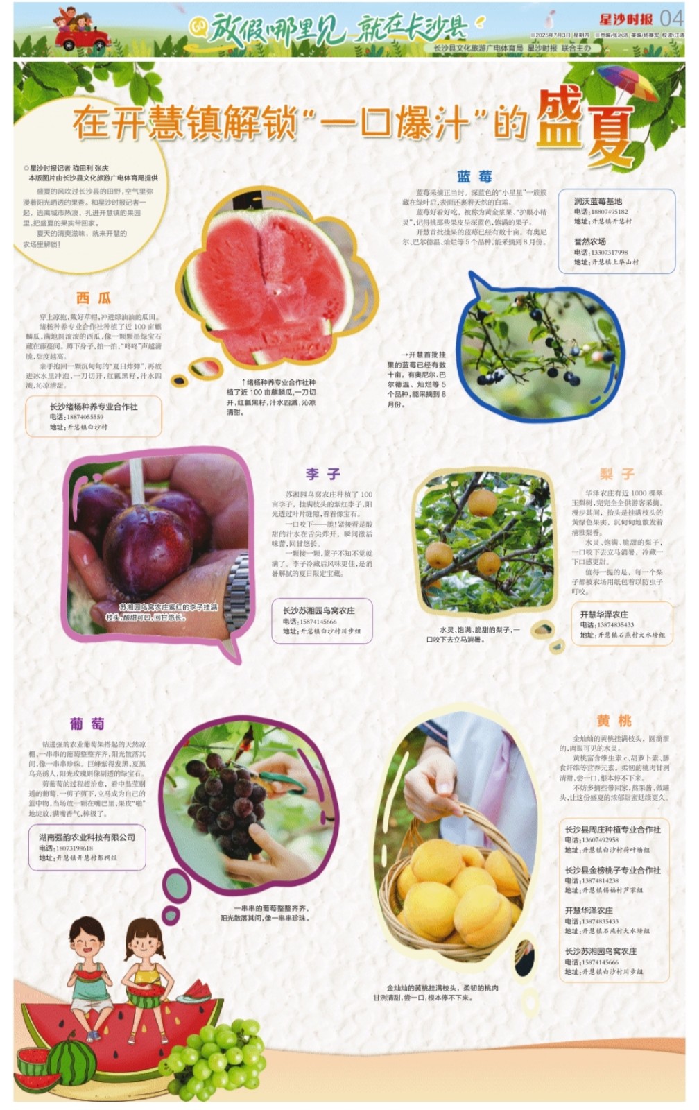 盛夏的风吹过长沙县的田野,空气里弥漫着阳光晒透的果香。和星沙时报记者一起,逃离城市热浪,扎进开慧镇的果园里,把盛夏的果实带回家。