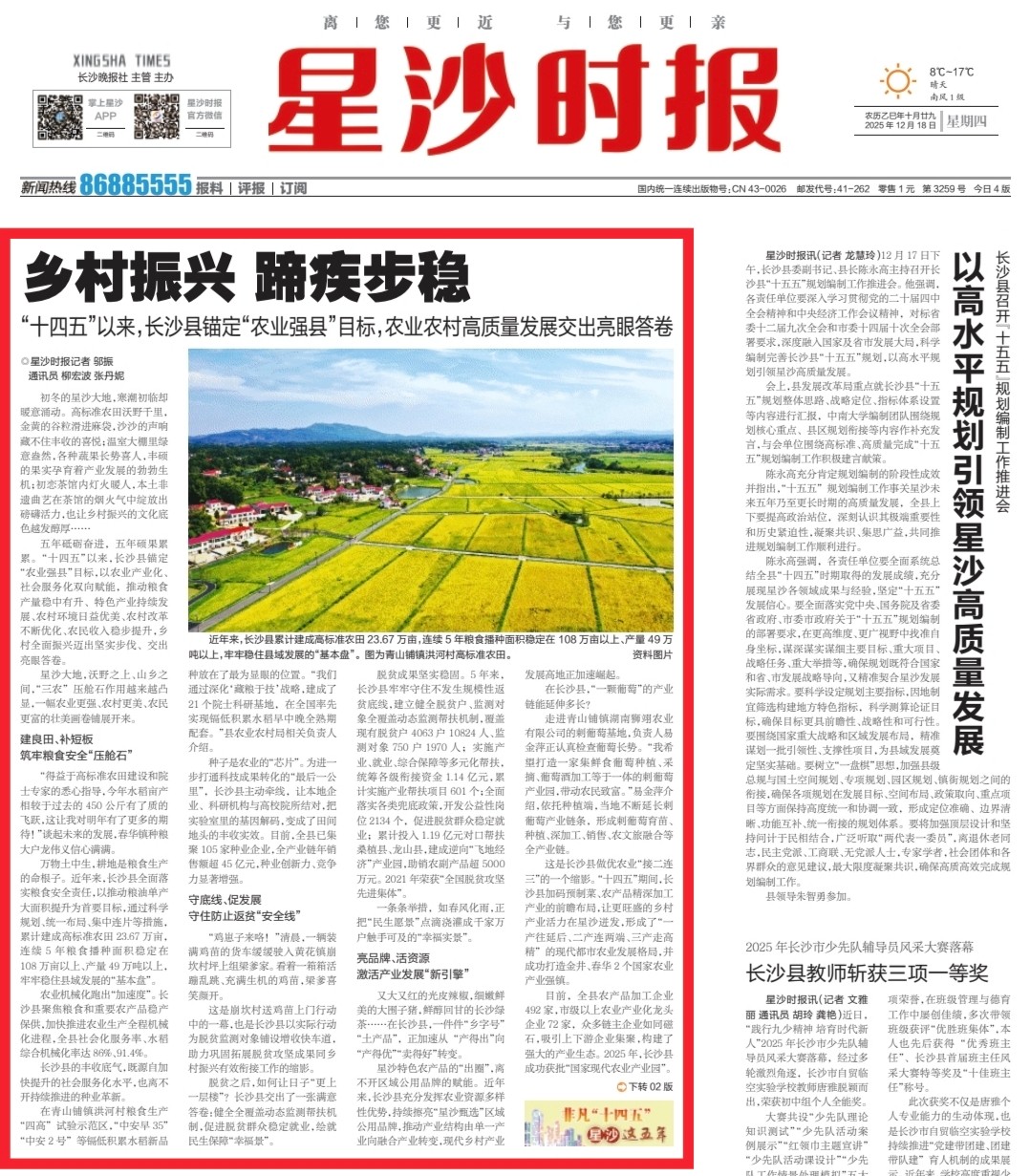 “十四五”以来,长沙县锚定“农业强县”目标,农业农村高质量发展交出亮眼答卷