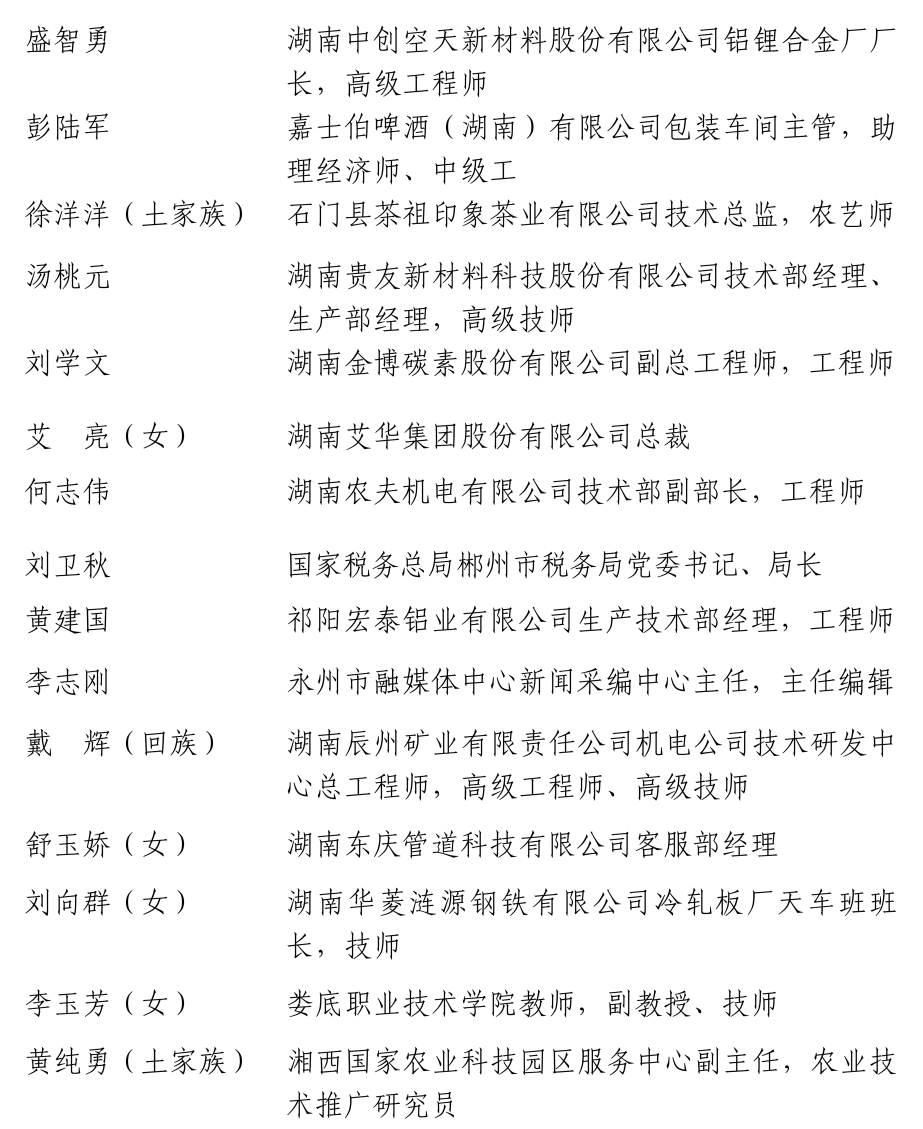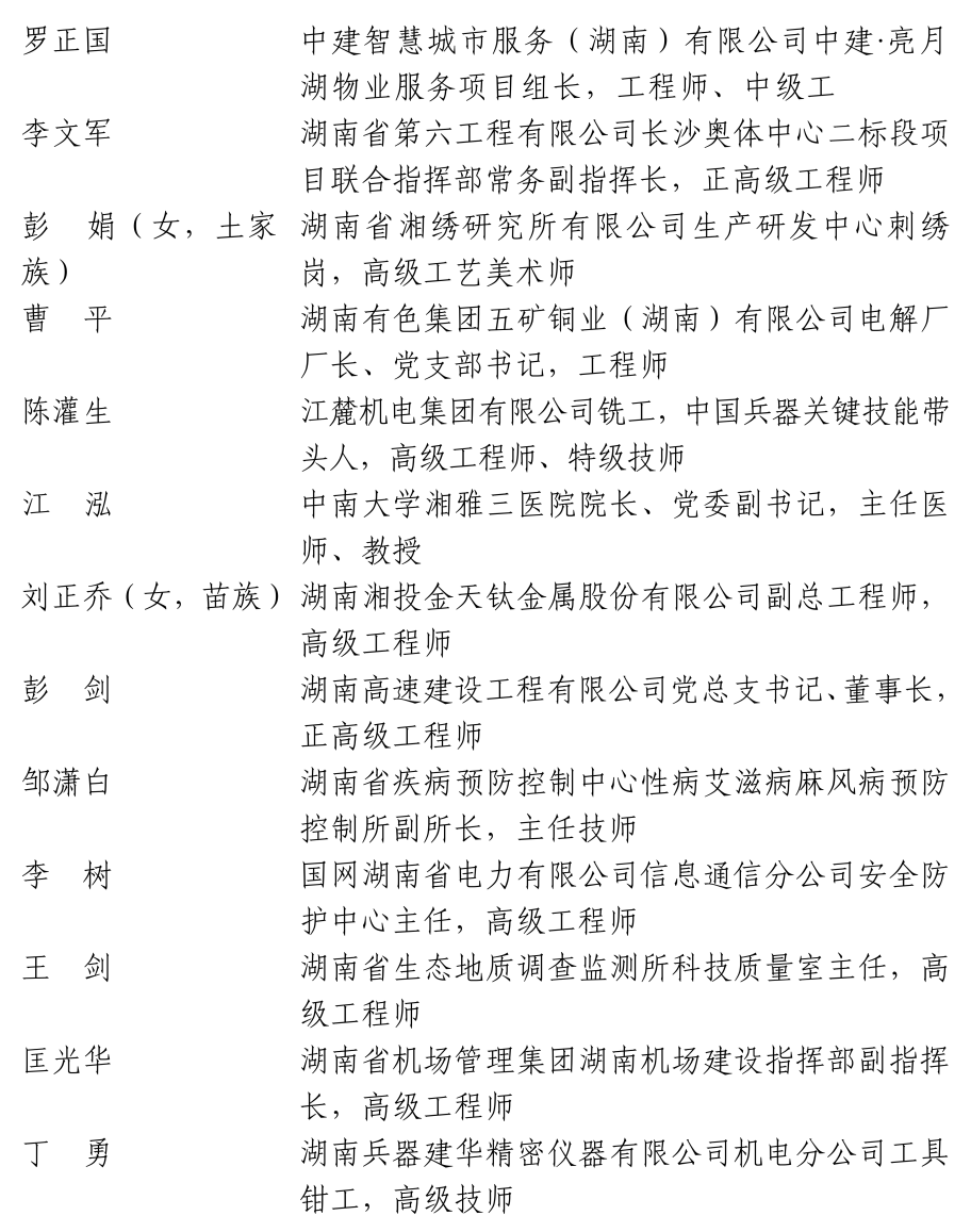 全国五一劳动奖章推荐人选名单