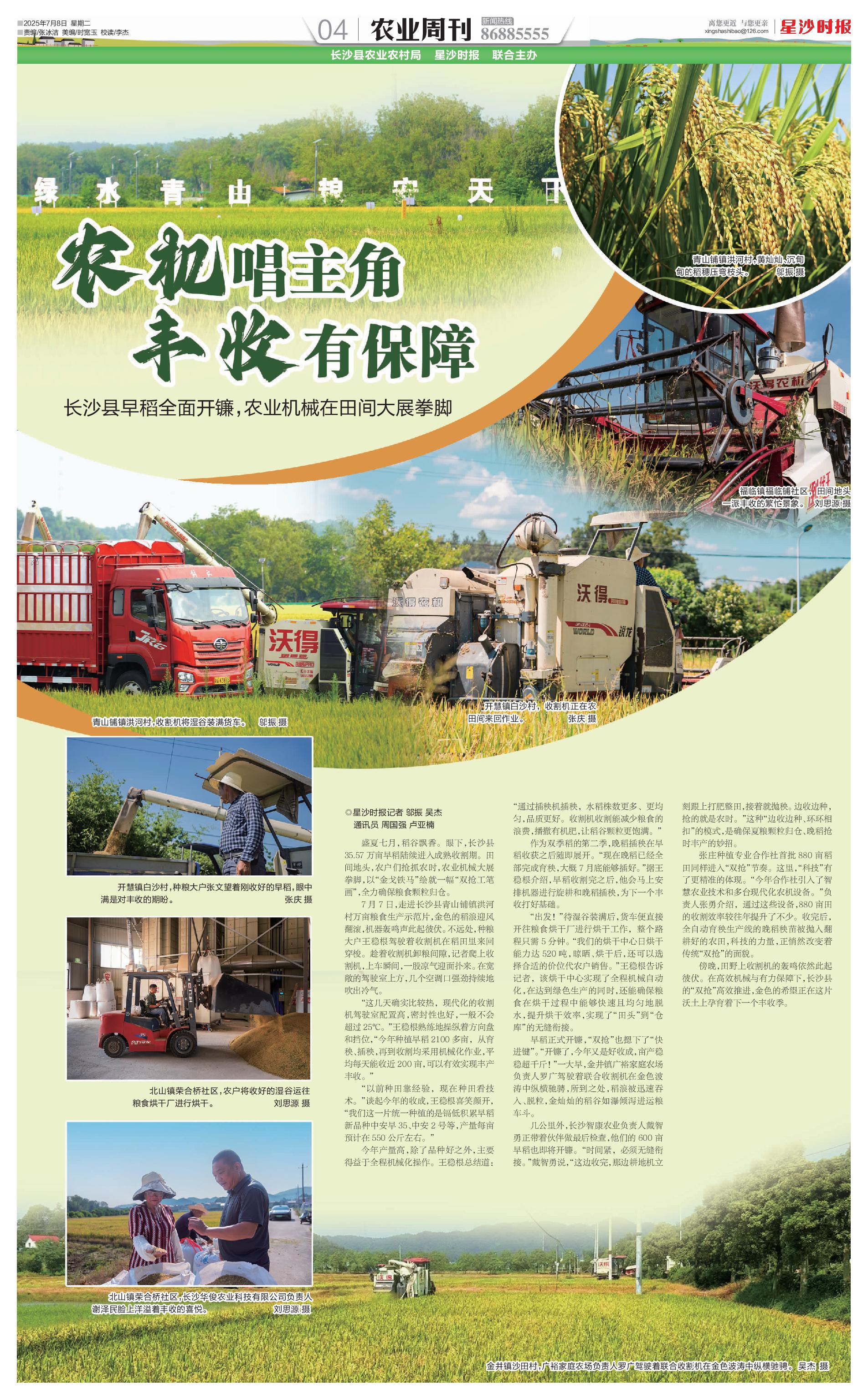 傍晚,田野上收割机的轰鸣依然此起彼伏。在高效机械与有力保障下,长沙县的“双抢”高效推进,金色的希望正在这片沃土上孕育着下一个丰收季。