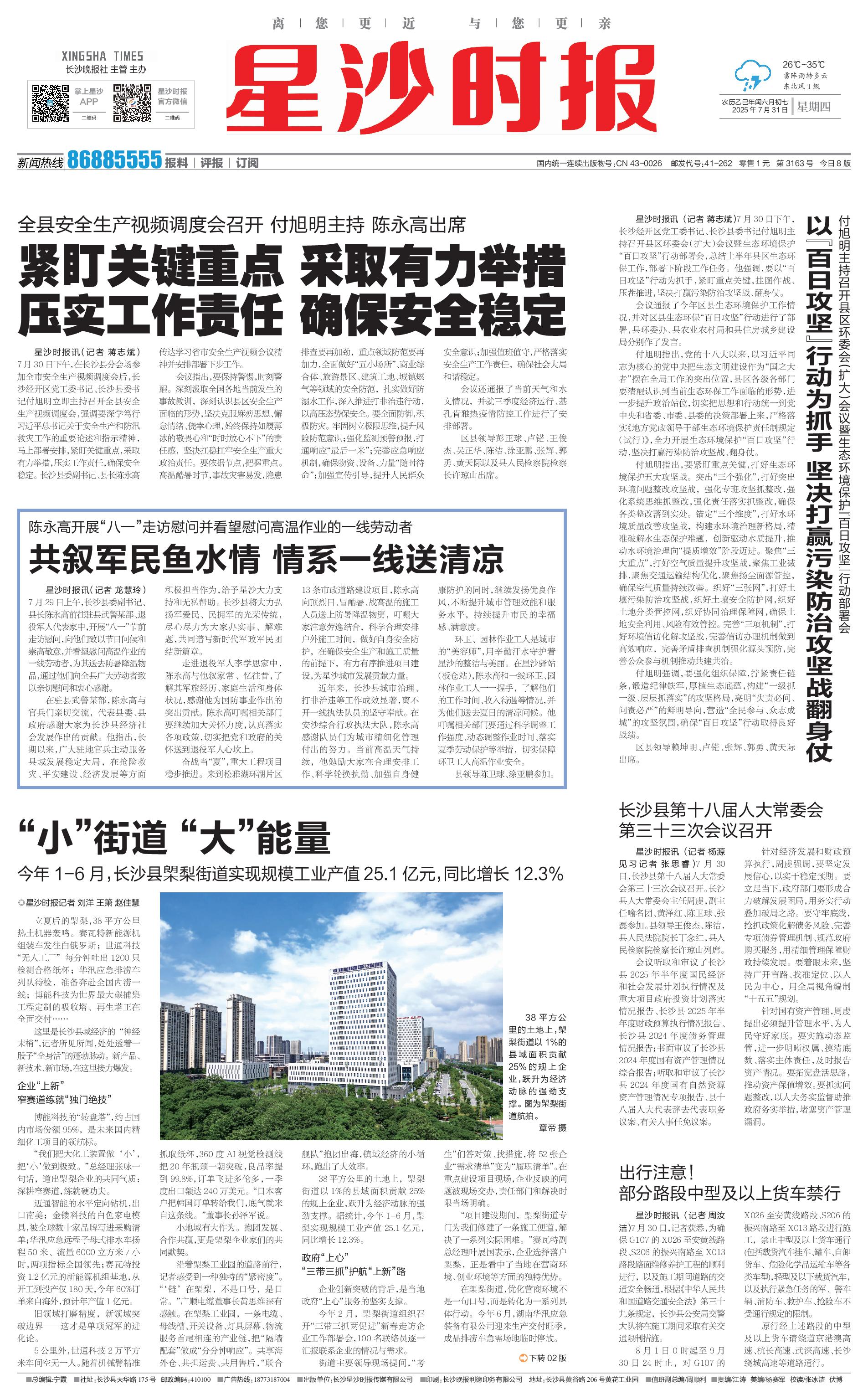 环卫、园林作业工人是城市的“美容师”,用辛勤汗水守护着星沙的整洁与美丽。在星沙驿站(板仓站),陈永高和一线环卫、园林作业工人一一握手,了解他们的工作时间、收入待遇等情况,并为他们送去夏日的清凉问候。他叮嘱相关部门要通过科学调整工作强度、动态调整作业时间、落实夏季劳动保护等举措,切实保障环卫工人高温作业安全。