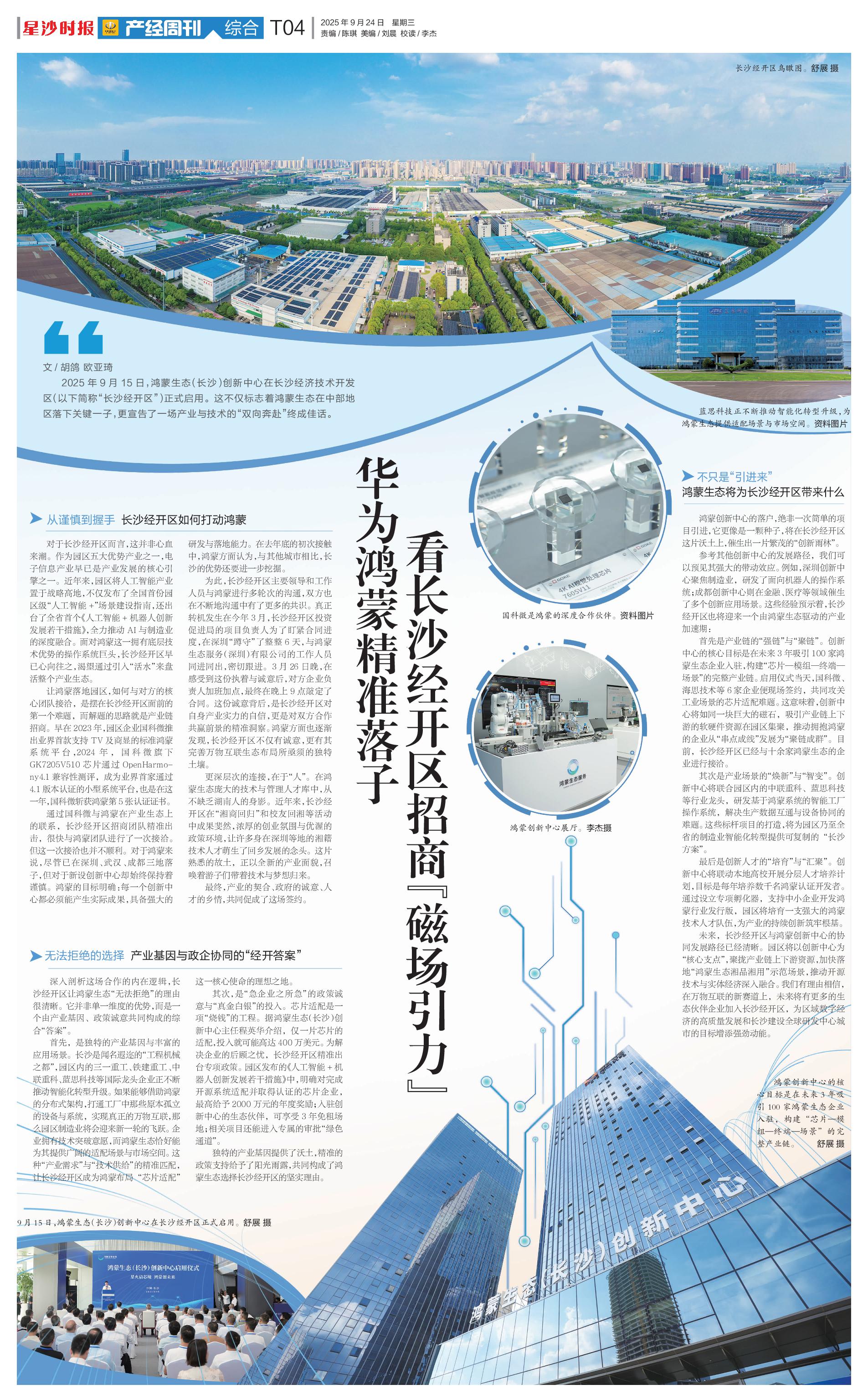 2025年9月15日,鸿蒙生态(长沙)创新中心在长沙经济技术开发区(以下简称“长沙经开区”)正式启用。这不仅标志着鸿蒙生态在中部地区落下关键一子,更宣告了一场产业与技术的“双向奔赴”终成佳话。