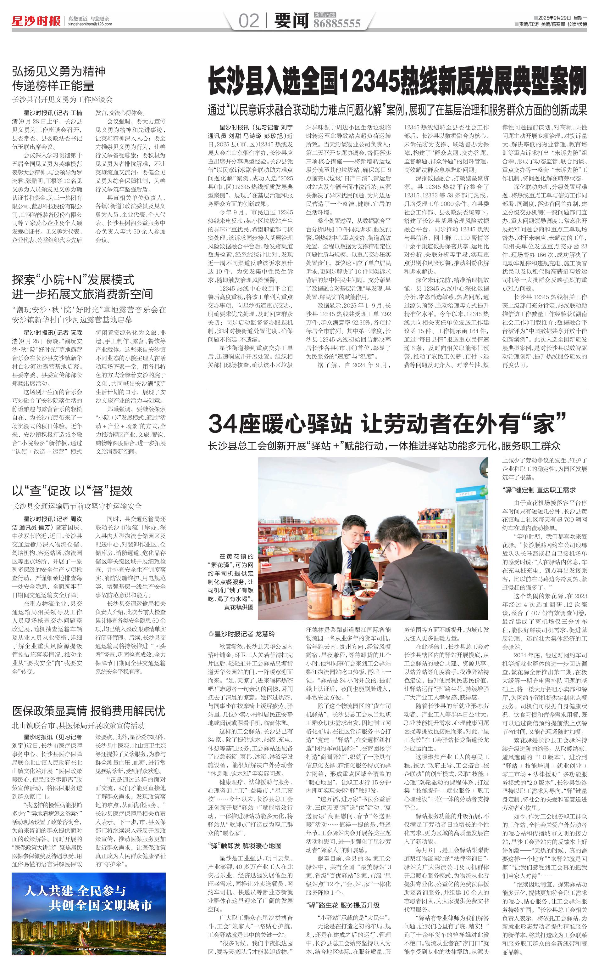 星沙时报讯(见习记者 刘宇 通讯员 刘甜 马诗璐 彭珍旭)近日,2025县(市、区)12345热线发展大会在山东烟台举办,长沙县应邀出席并分享典型经验。长沙县凭借“以民意诉求融合联动助力难点问题化解”案例,成功入选“2025县(市、区)12345热线新质发展典型案例”,展现了在基层治理和服务群众方面的创新成果。