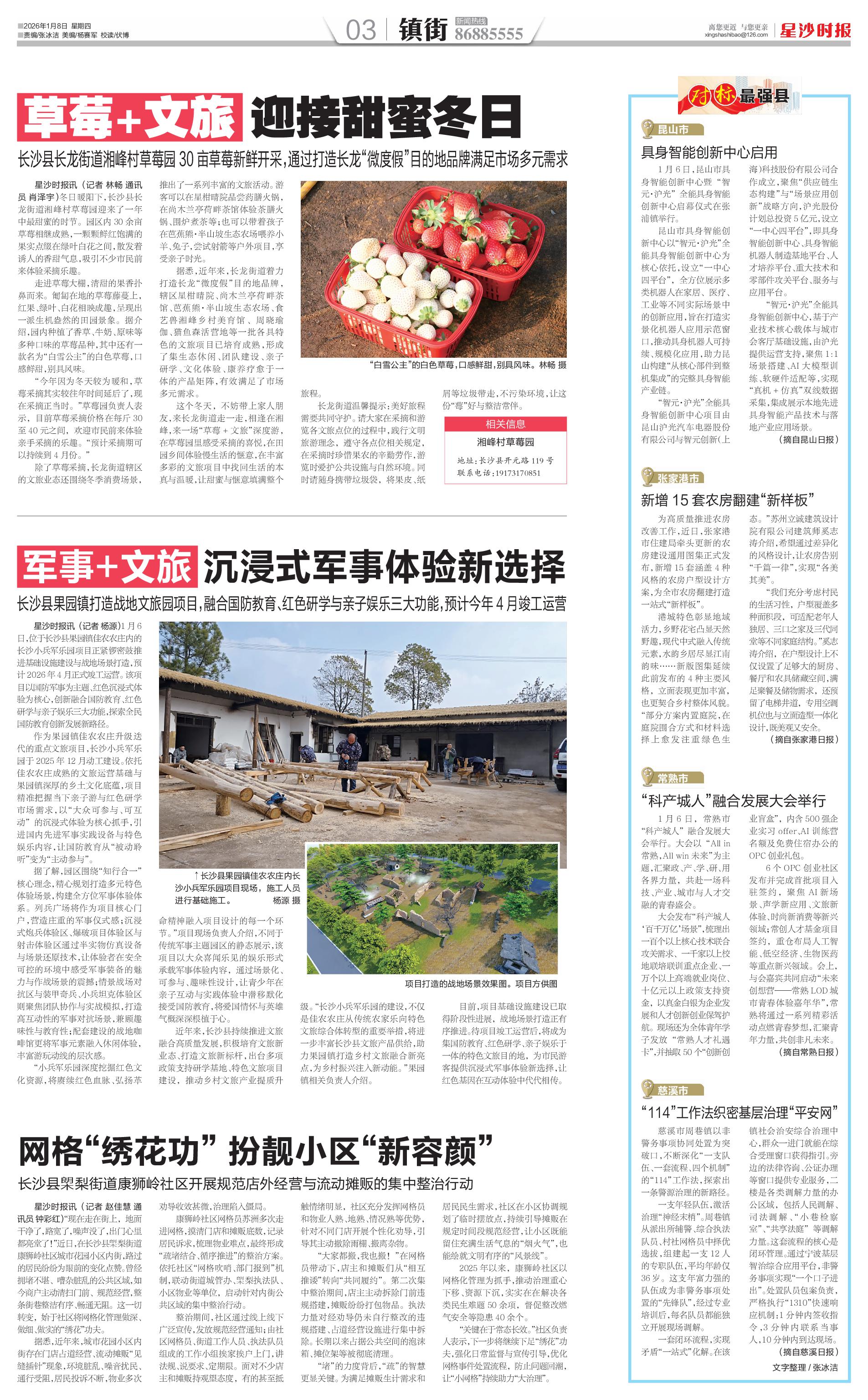 近年来,长沙县持续推进文旅融合高质量发展,积极培育文旅新业态、打造文旅新标杆,出台多项政策支持研学基地、特色文旅项目建设,推动乡村文旅产业提质升级。“长沙小兵军乐园的建设,不仅是佳农农庄从传统农家乐向特色文旅综合体转型的重要举措,将进一步丰富长沙县文旅产品供给,助力果园镇打造乡村文旅融合新亮点,为乡村振兴注入新动能。”果园镇相关负责人介绍。