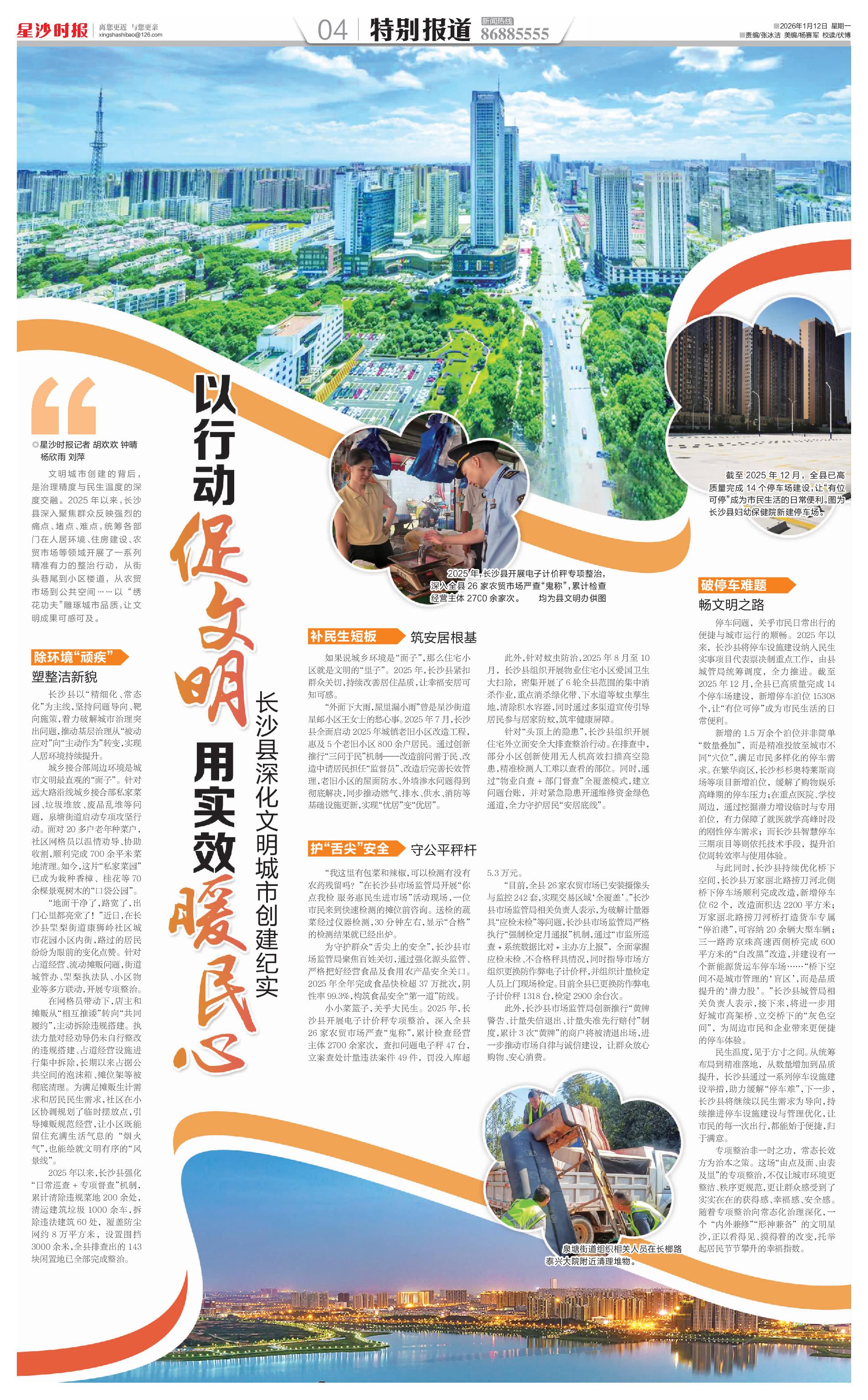 专项整治非一时之功,常态长效方为治本之策。这场“由点及面、由表及里”的专项整治,不仅让城市环境更整洁、秩序更规范,更让群众感受到了实实在在的获得感、幸福感、安全感。随着专项整治向常态化治理深化,一个“内外兼修”“形神兼备”的文明星沙,正以看得见、摸得着的改变,托举起居民节节攀升的幸福指数。