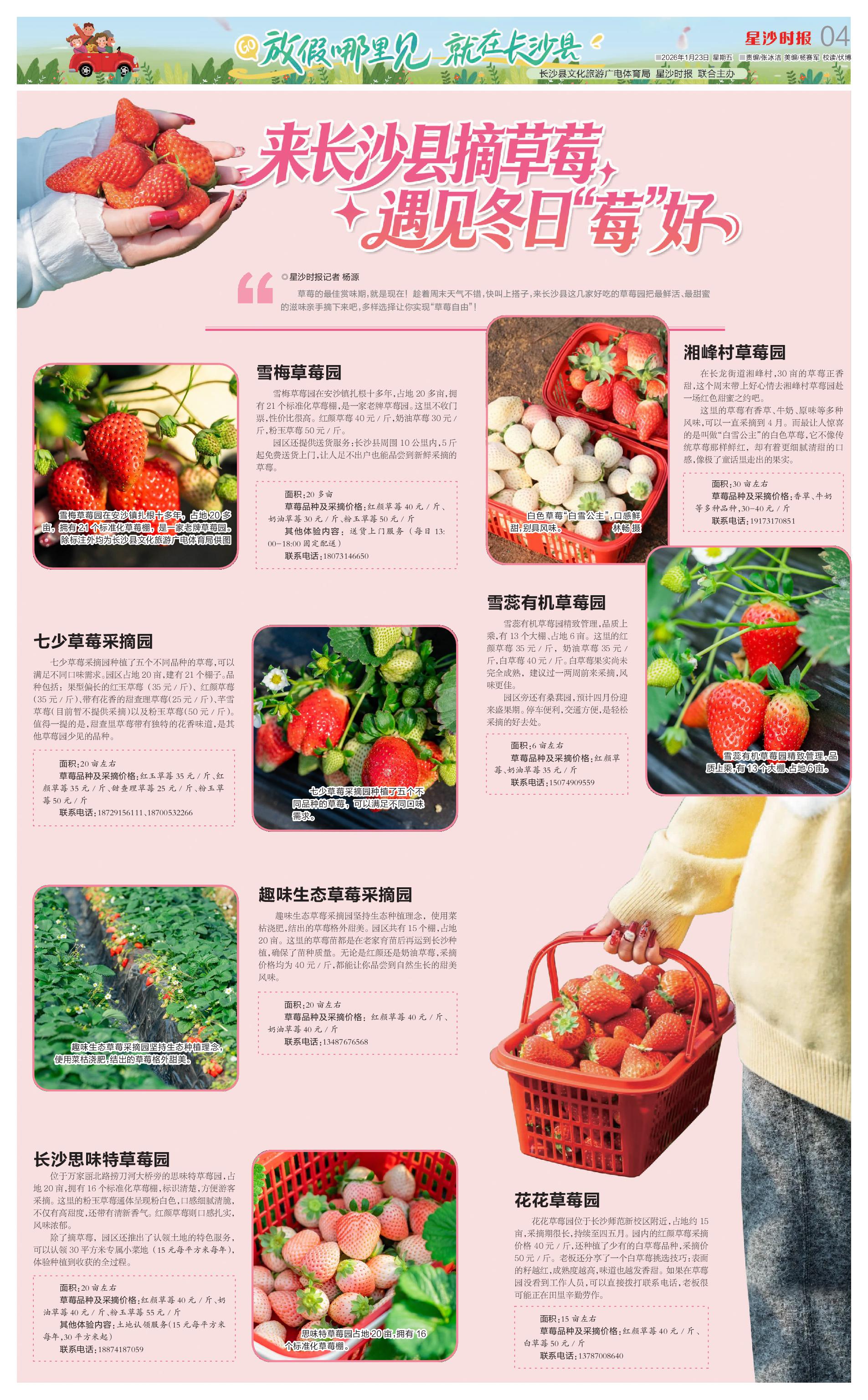 草莓的最佳赏味期,就是现在!趁着周末天气不错,快叫上搭子,来长沙县这几家好吃的草莓园把最鲜活、最甜蜜的滋味亲手摘下来吧,多样选择让你实现“草莓自由”!