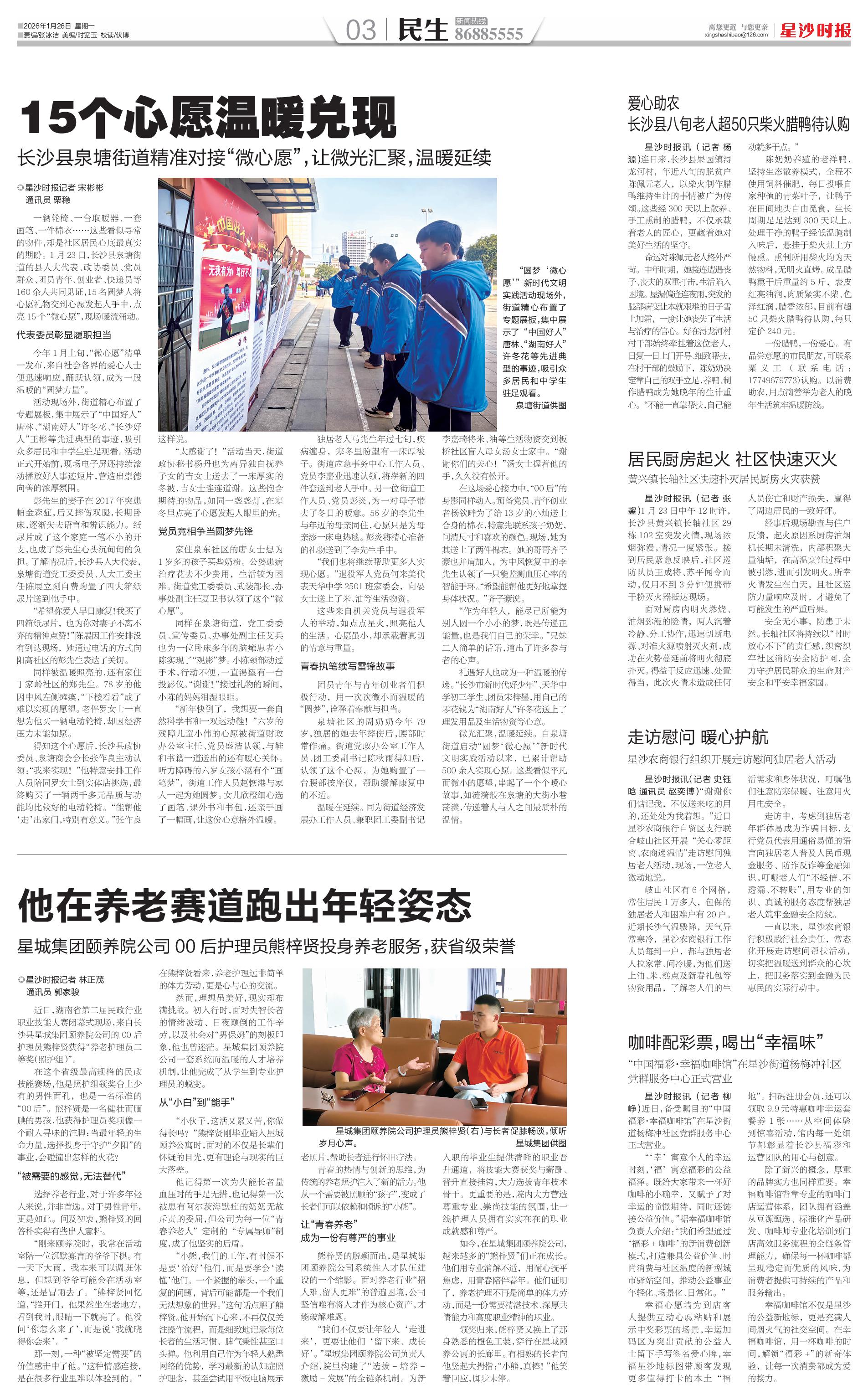 星沙时报讯(记者 史钰晗 通讯员 赵奕博)“谢谢你们惦记我,不仅送来吃的用的,还处处为我着想。”近日星沙农商银行自贸区支行联合岐山社区开展“关心零距离、农商递温情”走访慰问独居老人活动,现场,一位老人激动地说。