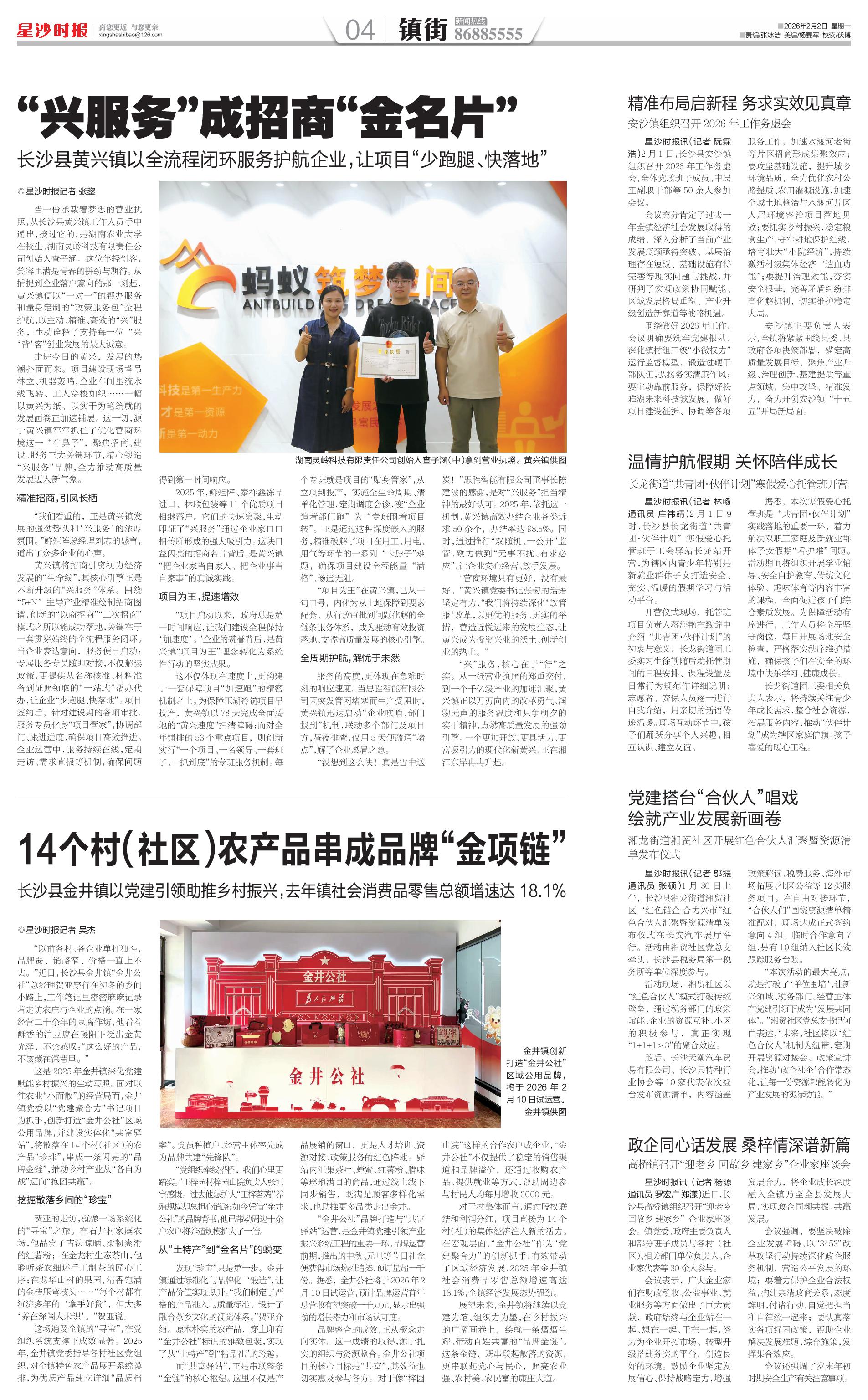 2025年,鲜矩阵、泰祥鑫冻品进口、林联包装等11个优质项目相继落户。它们的快速集聚,生动印证了“兴服务”通过企业家口口相传所形成的强大吸引力。这块日益闪亮的招商名片背后,是黄兴镇“把企业家当自家人、把企业事当自家事”的真诚实践。