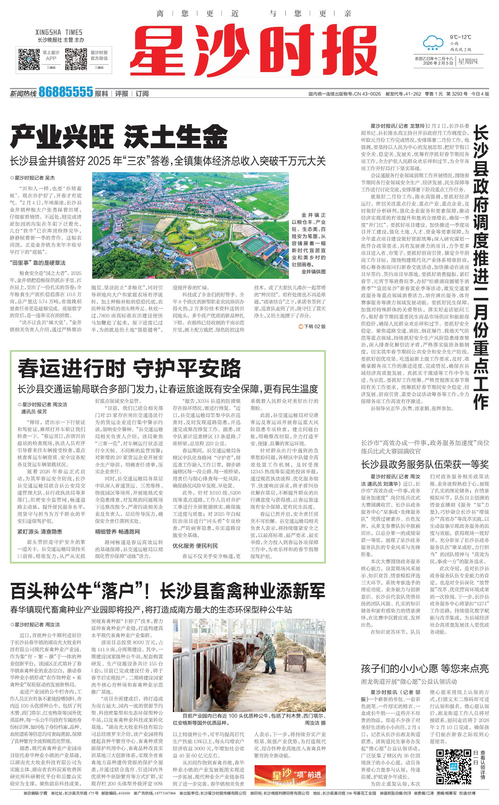就做好二月份工作,陈永高强调,要抓好经济运行。密切关注重点行业、重点产业、重点企业,及时做好分析研判,强化企业服务和要素保障,推动经济实现质的有效提升和量的合理增长,确保一季度“开门红”。要抓好项目建设。加快推进一季度项目开工建设,强化土地、人才、资金等要素保障,为全年重点项目建设做好资源统筹;深入研究谋划一批符合政策要求、具有发展潜力的项目,力争更多项目进入省、市笼子。要抓好招商引资。锚定全年招商工作目标,围绕构建现代化产业体系精准招商,精心筹备湘商回归新春交流活动,加快推动在谈项目早签约、签约项目早落地。要抓好消费提振。紧盯春节、元宵节等消费旺季,办好“松雅湖商圈暖冬消费季”“宜居星沙”新春置业季等活动,激发交通家政服务等重点领域消费活力,培育演出服务、体育赛事服务等潜力领域发展动能。要抓好民生保障。加强对特殊群体的关爱帮扶,落实好走访慰问工作,做好春节期间重要民生商品市场供应和能源保供稳价,确保人民群众欢乐祥和过节。要抓好安全稳定。聚焦道路交通、消防、烟花爆竹、极端天气防范等重点领域,持续抓好安全生产风险隐患排查整治,深入排查化解信访矛盾,严格落实值班备勤制度,切实筑牢春节期间公共安全和安全生产防线。要抓好创优攻坚。吃透最新上级工作要求,及时、准确掌握各项工作的推进进度、完成情况,确保在县域经济高质量发展、真抓实干激励等工作中争先进、当示范。要抓好工作统筹。严格贯彻落实春节期间有关工作要求,统筹抓好春节期间安全稳定、经济发展、招商引资、重要会议活动筹备等工作,全力保障各项工作高效有序推进。