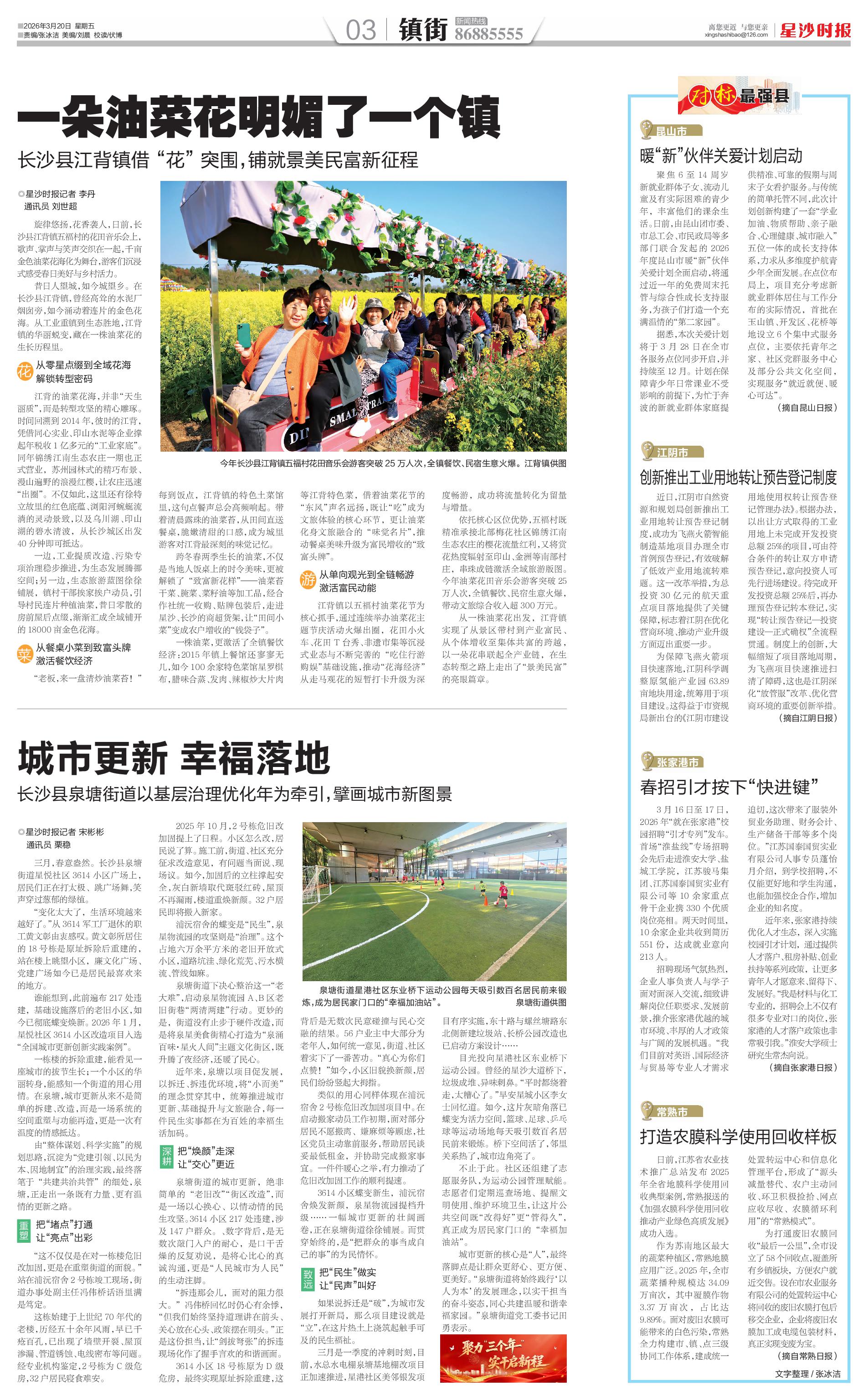 三月是一季度的冲刺时刻,目前,水总水电棚泉塘基地棚改项目正加速推进,星港社区美邻银发项目有序实施,东十路与螺丝塘路东北侧新建垃圾站、长桥公园改造也已启动方案设计……